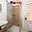 V koupelně je sprchový kout, umyvadlo, zrcadlo, otopný žebřík, toaleta, koupelnová skříňka a přípojka na pračku.